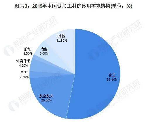 在我國鈦材的需求結構中,鈦加工材料主要應用于化工領(lǐng)域,與全球相比最主要的差別在航空領(lǐng)域,全球范圍內航空用鈦材始終占據鈦材總需求的53%左右,而國內航空航天用鈦材的比例僅為20%,說(shuō)明我國航空用鈦材市場(chǎng)還存在較大潛力。