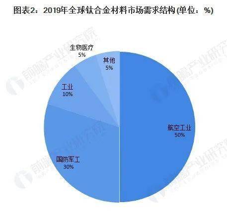 2、鈦合金材料主要應用于航天、軍工領(lǐng)域 在全球市場(chǎng)中,鈦合金材料主要應用于航空工業(yè)、國防軍工以及其他工業(yè)。其中,在航空工業(yè)的應用需求最大,約占50%,主要是用于飛機和發(fā)動(dòng)機的制造。
