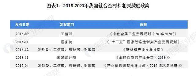 鈦合金指的是多種用鈦與其他金屬制成的合金金屬,近年來(lái),我國頻頻發(fā)布政策鼓勵鈦合金材料的研發(fā)、生產(chǎn)及應用。在全球市場(chǎng)中,鈦合金材料主要應用于航空工業(yè)、國防軍工以及其他工業(yè)。其中,在航空工業(yè)的應用需求最大,約占50%,主要是用于飛機和發(fā)動(dòng)機的制造。在我國鈦材的需求結構中,鈦加工材料主要應用于化工領(lǐng)域,而國內航空航天用鈦材的比例僅為20%,說(shuō)明我國航空用鈦材市場(chǎng)還存在較大潛力。目前,在高端鈦合金領(lǐng)域,我國能夠批量生產(chǎn)軍用航空鈦合金棒絲材的企業(yè)較少,呈“雙寡頭”的競爭格局。 1、政策鼓勵鈦合金材料的發(fā)展 鈦合金指的是多種用鈦與其他金屬制成的合金金屬。世界上許多國家都認識到鈦合金材料的重要性,相繼對其進(jìn)行研究開(kāi)發(fā),并得到了實(shí)際應用。近年來(lái),我國也頻頻發(fā)布政策鼓勵鈦合金材料的研發(fā)、生產(chǎn)及應用。2019年,據《產(chǎn)業(yè)結構調整指導目錄(2019征求意見(jiàn)稿)》披露的信息顯示,將高性能超細、超粗、復合結構硬質(zhì)合金材料及深加工產(chǎn)品、低模量鈦合金材料、耐蝕鈦合金材料、航空航天用鈦合金緊固件等列為產(chǎn)業(yè)結構調整鼓勵類(lèi)項目。