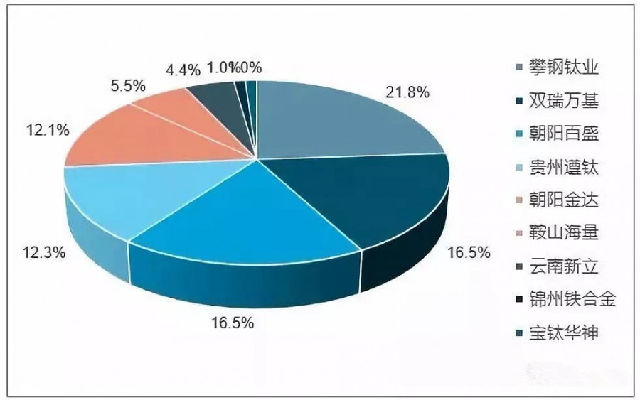 中國鈦資源儲量分布情況 根據2014年美國地質(zhì)調查局(USGS)公布的資料,2013年全球鈦鐵礦儲量7億噸;金紅石儲量4800萬(wàn)噸,二者合計儲量約7.5億噸,而我國的鈦資源儲備約2億噸,占到全球總儲量的28.6%,鈦鐵礦儲量位居世界第一。 全球海綿鈦產(chǎn)量、產(chǎn)能狀況 根據2014年美國地質(zhì)調查局(USGS)公布的資料,2013年全球海綿鈦產(chǎn)量22萬(wàn)噸,其中近10萬(wàn)噸由中國供應,俄羅斯(4.5萬(wàn)噸),日本(4萬(wàn)噸),哈斯克斯坦(2.7萬(wàn)噸)和烏克蘭(1萬(wàn)噸)。產(chǎn)量領(lǐng)先的國家主要有澳大利亞、南非、加拿大、印度、莫桑比克、中國、越南等國家。澳大利亞年產(chǎn)居世界第一位。 我國的海綿鈦供需基本平衡.俄羅斯海綿鈦略有短缺需少量進(jìn)口.美國海綿鈦一大半靠進(jìn)口.日本海綿鈦過(guò)剩,多余的用于出口.烏克蘭和哈薩克斯坦不生產(chǎn)鈦材,所產(chǎn)海綿鈦專(zhuān)門(mén)用于出口。英法德意不生產(chǎn)海綿鈦,所需海綿鈦完全靠進(jìn)口。 圖3 海綿鈦的人工挑選 我國是海綿鈦的生產(chǎn)大國,占到全球產(chǎn)能的1/2。我國的海綿鈦生產(chǎn)始于1958年的撫順?shù)X廠(chǎng).六七十年代我國興建了十幾家海綿鈦工廠(chǎng),其中1970年9月投產(chǎn)的位于遵義的海綿鈦工廠(chǎng)規模最大。1980年海綿鈦產(chǎn)量2800噸,而此時(shí)的鈦材產(chǎn)量?jì)H500噸。八十年代我國壓縮軍工生產(chǎn)海綿鈦的需求減少,大部分工廠(chǎng)大關(guān)閉或轉產(chǎn),到九十年代只剩下遵義和撫順的兩家海綿鈦工廠(chǎng)。但隨著(zhù)我國鈦材生產(chǎn)的高速發(fā)展,1999年我國海綿鈦產(chǎn)量恢復到2800噸,相當1980年的4倍。 2017年中國海綿鈦總產(chǎn)能比2016年增長(cháng)了5.7%,達到9.3萬(wàn)噸,國內7家海綿鈦生產(chǎn)企業(yè)的產(chǎn)能均與2016年相當。 圖4 2017年中國海綿鈦主要生產(chǎn)企業(yè)產(chǎn)量占比