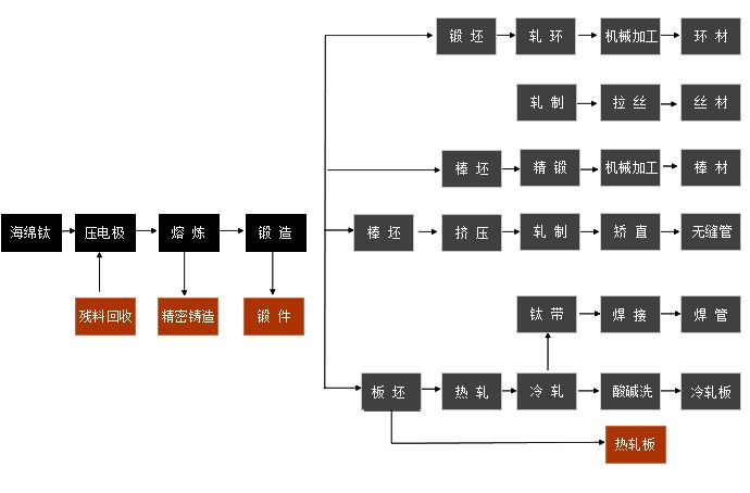 目前,金屬鈦生產(chǎn)的工業(yè)方法是可勞爾法,產(chǎn)品為海綿鈦。制取鈦材傳統的工藝是將海綿鈦經(jīng)熔鑄成錠,再加工而成鈦材。按此,從采礦到制成鈦材的工藝過(guò)程的主要步驟為:鈦礦->采礦->選礦->太精礦->富集->富鈦料->氯化->粗TiCl4->精制->純TiCl4->鎂還原->海綿鈦->熔鑄->鈦錠->加工->鈦材或鈦部件上述步驟中如果采礦得到的是金紅石,則不必經(jīng)過(guò)富集,可以直接進(jìn)行氯化制取粗TiCI4。另外,熔鑄作業(yè)應屬冶金工藝,但有時(shí)也歸入加工工藝。  上述工藝過(guò)程中的加工過(guò)程是指塑性加工和鑄造而言。塑性加工方法又包括鍛造、擠壓、軋制、拉伸等。它可將鈦錠加工成各種尺寸的餅材、環(huán)材、板材、管材、棒材、型材等制品,也可用鑄造方法制成各種形狀的零件、部件。  鈦和鈦合金塑性加工具有變形抗力大;常溫塑性差、屈服極限和強度極限比值高、回彈大、對缺口敏感、變形過(guò)程易與模具粘結、加熱時(shí)又易吸咐有害氣體等特點(diǎn),塑性加工較鋼、銅困難。 故鈦和鈦合金的加工工藝必須考慮它們的這些特點(diǎn)。  鈦采用塑性加工,加工尺寸不受限制,又能夠大批量生產(chǎn),但成材率低,加工過(guò)程中產(chǎn)生大量廢屑殘料。 針對鈦塑性加工的上述缺點(diǎn),近年來(lái)發(fā)展了鈦的粉末冶金工藝。鈦的粉末冶金流程與普通粉末冶金相同,只是燒結必須要在真空下進(jìn)行。它適用乎生產(chǎn)大批量、小尺寸的零件,特別適用于生產(chǎn)復雜的零部件。這種方法幾乎無(wú)須再經(jīng)過(guò)加工處理,成材率高,既可充分利用鈦廢料作原料,又可以降低生產(chǎn)成本,但不能生產(chǎn)大尺寸的鈦件。鈦的粉末冶金工藝流程為:鈦粉(或鈦合金粉)->篩分->混合->壓制成形->燒結->輔助加工->鈦制品。  鈦材生產(chǎn)的原則流程 鈦材除了純鈦外,目前世界上已經(jīng)生產(chǎn)出近30種牌號的鈦合金。使用最廣泛的鈦合金是Ti-6Al-4V,Ti-5Al—2.5Sn等 |