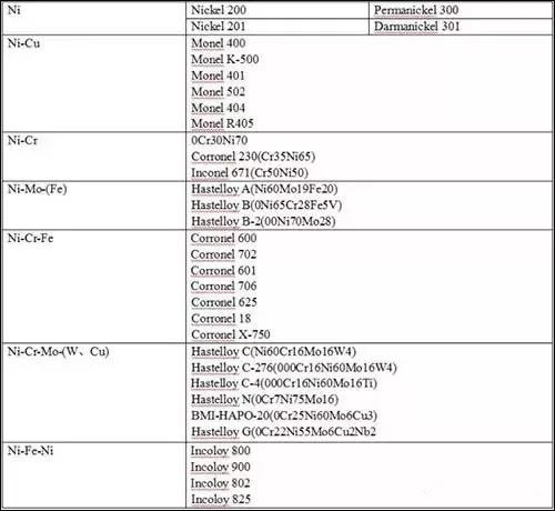 由于鈦的巨大鈍化性能,在許多情況下與異種金屬接觸時(shí),并不加快腐蝕,而可能加快異種金屬的腐蝕。如在低濃度非氧化性的酸中,若將Pb、Sn、Cu或蒙乃爾合金與鈦接觸形成電偶時(shí),這些材料腐蝕加快,而鈦不受影響。而在鹽酸中,鈦與低碳鋼接觸時(shí),由于鈦表面產(chǎn)生新生氫,破壞了鈦的氧化膜,不僅引起鈦的氫脆,而且加快鈦的腐蝕,這可能是由于鈦對氫有高度的活性所致。 鈦中的含鐵量對某些介質(zhì)中的耐腐蝕性能有影響,鐵增多的原因除原材料的原因外,常常是焊接時(shí)沾污的鐵滲入焊道,使焊道中局部含鐵量增高,這時(shí)腐蝕具有不均勻的性質(zhì)。使用鐵件支撐鈦設備時(shí),鐵鈦接觸面上的鐵沾污幾乎是不可避免的在鐵沾污區腐蝕加速,特別是在有氫存在的情況下。當沾污表面的鈦氧化膜發(fā)生機械損壞時(shí),氫就滲入金屬,根據溫度、壓力等條件,氫發(fā)生相應的擴散,這使鈦產(chǎn)生不同程度的氫脆。因此鈦在中等溫度和中等壓力和含氫系統中使用要避免表面鐵污染。 在一般情況下,鈦不會(huì )發(fā)生孔蝕。 鈦還具有抗腐蝕疲勞穩定性。 鈦耐縫隙腐蝕性能較好,尤其是Ti-0.3Mo-0.8Ni及Ti-0.2Pd合金,因此Ti-0.3Mo-0.8Ni及Ti-0.2Pd合金廣泛用于容器設備的密封面材料,以解決設備密封面縫隙腐蝕問(wèn)題。 2. 鈦材的應用 由于鈦材的優(yōu)良耐腐蝕性能,鈦材廣泛應用于石油、化工、制鹽、制藥、冶金、電子、航空、航天、海洋等相關(guān)領(lǐng)域。 鈦對大多數鹽溶液來(lái)說(shuō)具有優(yōu)異的耐蝕性,如鈦在氯化物溶液中比高鉻鎳鋼耐蝕,并無(wú)孔蝕現象。但在三氯化鋁中腐蝕率較高,這與三氯化鋁水解后產(chǎn)生濃鹽酸有關(guān)。鈦對熱的亞氯酸鈉和各種濃度的次氯酸鹽也有良好的穩定性。因此鈦材廣泛用于真空制鹽和漂粉精行業(yè)。 鈦對大多數的堿溶液具有良好的耐蝕性。鈦在濃度小于50%的氫氧化鈉和氫氧化鉀溶液中較為穩定。如果堿溶液中含有氯離子或氯化物,則其耐蝕性甚至超過(guò)鎳和鋯。但在溫度和濃度增大的情況下,腐蝕會(huì )增大?,F在氯堿行業(yè)是國內民用鈦材應用的最大領(lǐng)域。 鈦在干燥的氯氣中不耐蝕,同時(shí)有著(zhù)火的危險,但在潮濕的氯氣中具有很高的穩定性,超過(guò)鋯、哈氏合金C及蒙乃爾合金,甚至在飽和氯氣的硫酸、鹽酸和氯化物等介質(zhì)中也穩定,所以鈦材是硫酸法鈦白粉生產(chǎn)關(guān)鍵設備的首選材料。 由于鈦材在碳氫化合物中的耐蝕性很好,甚至在含有酸及氯化物類(lèi)雜質(zhì)時(shí)也很好。因此鈦材在有機化工中也廣泛應用,如PTA(精對苯二甲酸),PVA(維尼綸)等。 鈦材在海水中具有優(yōu)異的耐腐蝕性能,因此鈦材也廣泛應用于海洋石油鉆井平臺、海水淡化等海洋領(lǐng)域。 鎳及鎳基合金 1.鎳及鎳基合金的國內生產(chǎn)狀況 國內工業(yè)用純鎳完全可以自行生產(chǎn),但一些鎳基合金則主要依賴(lài)進(jìn)口。 鎳及鎳基合金種類(lèi)(部分有國家材料標準) ![]()