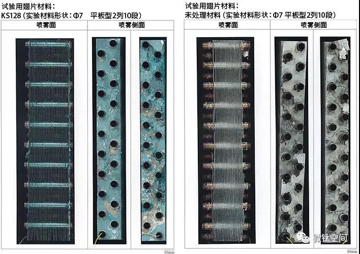 涂膜鰭片 未處理材料 (2) 耐蝕性 對涂膜進(jìn)行耐蝕性處理,可保護鋁板防受腐蝕。 這是一種應用于鹽害地區空調室外機鰭片的特殊化產(chǎn)品。 表面處理鰭片材料的耐蝕性調查結果(鹽水噴霧1000小時(shí)) (3) 加工性 采用潤滑性能優(yōu)良的涂膜,可提高沖壓時(shí)的加工性能 2.產(chǎn)品系列 產(chǎn)品系列豐富,擁有親水性、耐蝕性和加工性?xún)?yōu)異的各種涂膜鰭片,可滿(mǎn)足熱交換器的所有需求。