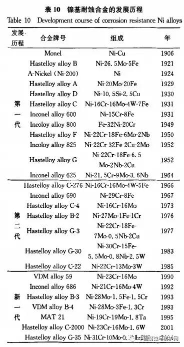 3.2國內概況 我國自20世紀50年代開(kāi)始仿制、改進(jìn)國外牌號的鎳基合金,到70年代末已有10多種牌號。80年代以后,研制有了較大進(jìn)展并有了一些新牌號的鎳基合金。1984年重慶儀表材料研究所根據苛刻環(huán)境下工業(yè)過(guò)程檢測與控制儀表對耐蝕合金的需要,研制出了Ni-Cr-Mo耐蝕合金,定名為3YC24合金。1986年鋼鐵研究總院發(fā)明了適用于沸騰氫氟酸液、氣相和濕氯、濕氟以及鹽酸和硫酸等苛刻腐蝕環(huán)境的鎳基耐蝕合金,特別是在沸騰氫氟酸中,其耐蝕性比Hastelloy C-4和Hastelloy C-267提高J,100倍。1994年公布的鎳基耐蝕合金牌號有23種、高溫合金牌號有24種。部分牌號與國際牌號的對應如表11所示。 國內Monel合金的使用較少,特別是Monel合金閥門(mén)幾乎全部靠進(jìn)口。錦州鐵合金股份有限公司開(kāi)發(fā)了可替代進(jìn)口產(chǎn)品的Monel合金。Inconel 600在我國的生產(chǎn)和應用尚處于起步階段,應用范圍有限,僅限于少數引進(jìn)設備及零部件。中國化學(xué)工程第十四建設公司承建的浙江衙州臣化(集團)公司氟化工程,部分工藝管道采用了美國進(jìn)口的In-conel 600合金管道。為了打破發(fā)達國家的壟斷,四川川投長(cháng)城特殊鋼股份有限公司成功地開(kāi)發(fā)出Incoloy 800、Incoloy 800H、Inconel 625、Inconel 690、NSl41等耐蝕合金的板、管等犁材。 4展望 鎳基耐蝕合金因其良好的力學(xué)性能、加工性能及耐腐蝕性,越來(lái)越廣泛地應用于工業(yè)領(lǐng)域。我國有豐富的鎳資源, 隨著(zhù)經(jīng)濟的快速發(fā)展,鎳合金將保持旺盛需求。因此,鎳基合金的研究開(kāi)展對充分利用金川集團公司鎳鈷資源的優(yōu)勢、拓寬公司特種合金材料廠(chǎng)的產(chǎn)品領(lǐng)域、提升企業(yè)在鎳合金制品深加工領(lǐng)域的能力、擴大產(chǎn)品的市場(chǎng)覆蓋面具有重要的經(jīng)濟和實(shí)用意義。筆者認為今后鎳基耐蝕合金應在以下幾個(gè)方面加強研究。 (1)應加快開(kāi)發(fā)新型鎳基耐蝕合金,加強對其應用領(lǐng)域拓寬的研究; (2)針對工程領(lǐng)域,深入研究相關(guān)工業(yè)設備制造的成型、焊接、熱處理等關(guān)鍵工藝參數; (3)研究更多復雜、苛刻腐蝕條件下的腐蝕行為與機理。 |